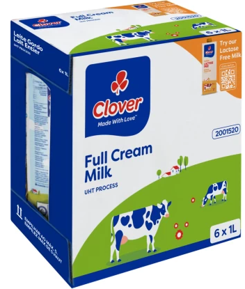Clover Full Cream Long Life Milk, Plain Flavour (6 x 1 L)